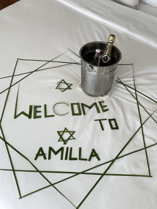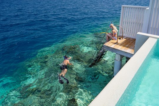 Fotos, Galerie Impressionen von unserem Amilla Maldives Resort & Residences-Test Die elegante Great Beach Villa Residence verfügt über acht Schlafzimmer. © Amilla MaldivesBeim Floating Breakfast startet man den Tag mit einem Frühstück im Pool.Die weißen Wasservillen des Amilla Fushi strahlen in der Sonne. Über eine Leiter gelangt man von der Wasservilla direkt zum Riff. © Amilla MaldivesÜber hölzerne Treppen geht es hinauf in die Baumhäuser des Resorts. © Amilla Maldives Dieses Boot ermöglicht besondere Einblicke in die Unterwasserwelt. © Amilla MaldivesDas „Baazaar“ am Abend. © Amilla MaldivesZum Wein-Tasting wird exquisiter Käse gereicht. Das Blue Hole ist ein spektakuläres Naturphänomen für Taucher. © Amilla Maldives© Bernhard KriegerBeim Stand up Paddling können Urlauber die Lagune erkunden. © Amilla MaldivesVor der Strandvilla können Gäste in bequemen Liegen entspannen. © Amilla Maldives Das exklusive Amilla Estate verfügt über sechs Schlafzimmer und einen Privatpool. © Amilla Maldives Die Tree Houses zählen zu den Highlights im Resort. © Amilla Maldives Gleich hinter der Wasservilla geht es hinab in den Ozean.